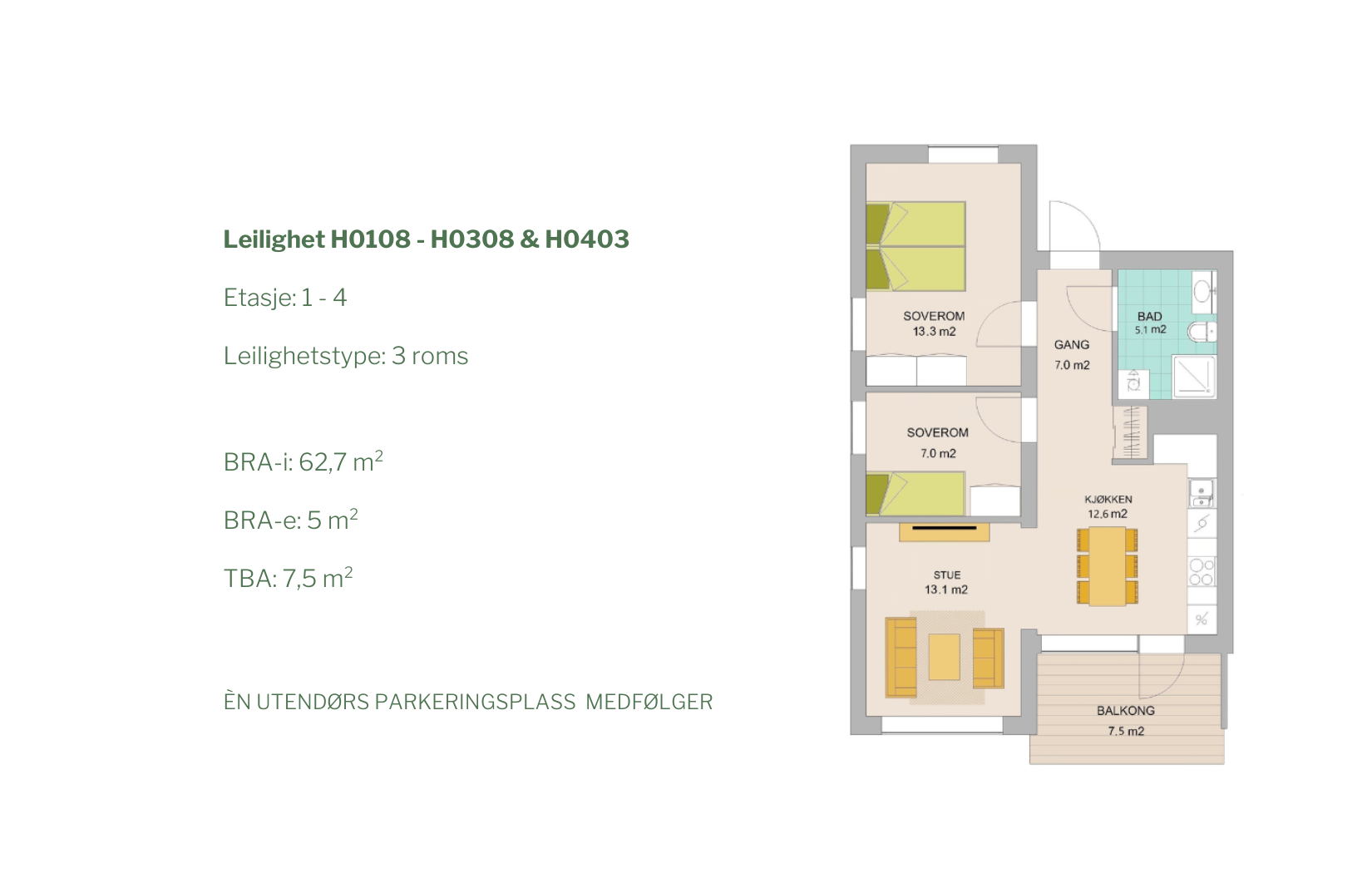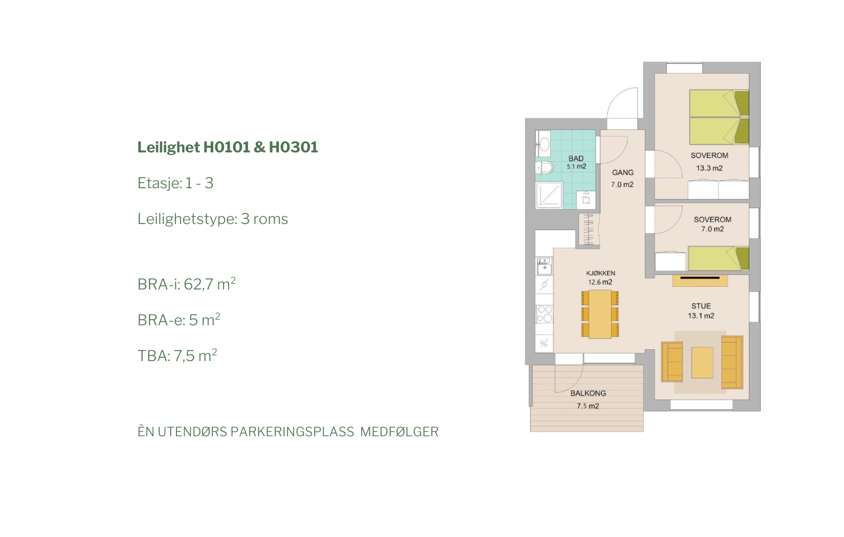 En godt utnyttet 3-roms leilighet på 62,7 kvm BRA-i, med tidsriktige løsninger og store vinduer som slipper inn naturlig lys. Leiligheten har fokus på romfunksjoner som passer for flere deler av livet, med egne soner for kjøkken og stue, et romslig hovedsoverom, samt ett mindre soverom som kan brukes til det du måtte ønske.
